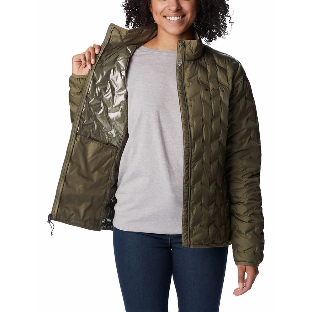 A jaqueta down feminina preta Delta Ridge™ oferece conforto térmico e mantém seu corpo aquecido ao longo de todo o uso.