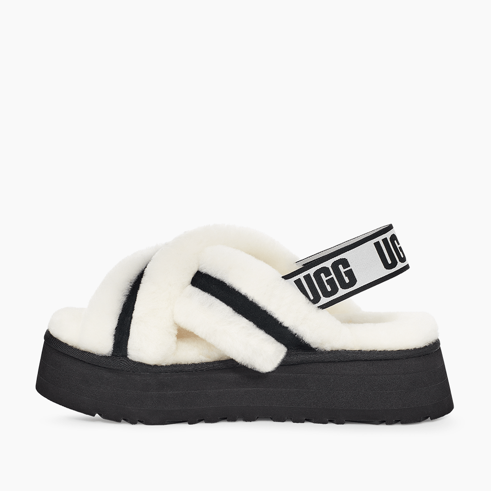 Com solas em plataforma de estilo retrô e aconchegante tiras com pelos, a Disco Cross Slide se destaca com facilidade. Como um divertido slip-on, esta silhueta é trabalhada com uma tira elástica embelezada com logotipo, pele de carneiro premium e nossa mistura de lã UGGplush ultra-suave. A sola elevada é feita de espuma EVA em camadas, oferecendo amortecimento durante todo o dia, além de versatilidade ao visual. Use a sua com jeans boyfriend, vestidos midi ou calças e camiseta coloridas.