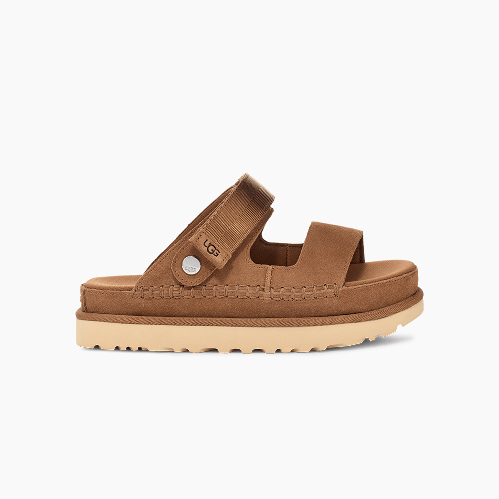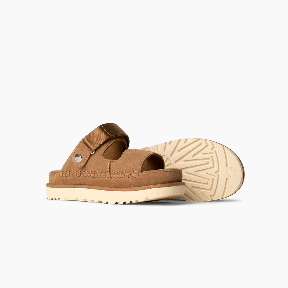Nosso Goldenstar Glide traz o conforto de um conversível para todos os seus passeios em dias ensolarados. Ele é projetado com uma tira ajustável no calcanhar que pode ser movimentada para a frente para um calçar fácil quando você estiver pronto para sair. A palmilha contornada é forrada com material macio e reciclado, com tratamento antiodor para manter você com uma sensação de frescor. Do cabedal em camurça rica ao solado em EVA de cana-de-açúcar renovável, o Goldenstar Glide está indo direto para a sua linha de “favoritos”.